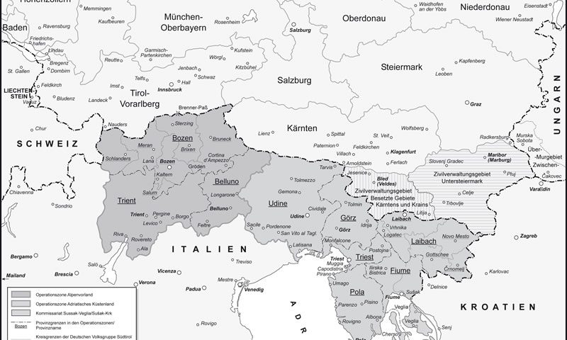 Michael Wedekind: Nationalsozialistische Besatzungs- und Annexionspolitik in Norditalien 1943 bis 1945: Die Operationszonen „Alpenvorland“ und „Adriatisches Küstenland“, München: Oldenbourg 2003 (rückwärtige Einbandklappe).